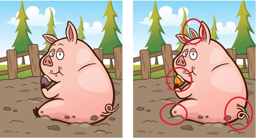 Can you Spot 4 Differences Between the Two Pig in the Farm Pictures in 14 seconds?
