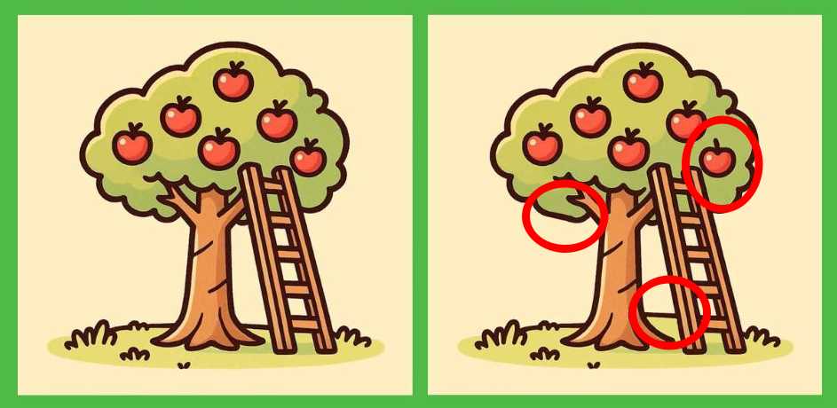 Spot the difference puzzles are highly popular on the internet. In today’s spot the difference puzzle challenge, the readers need to spot the three differences in the apple tree pictures in 11 seconds. Can you find all the differences within 11 seconds? Test your visual skills now!
