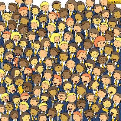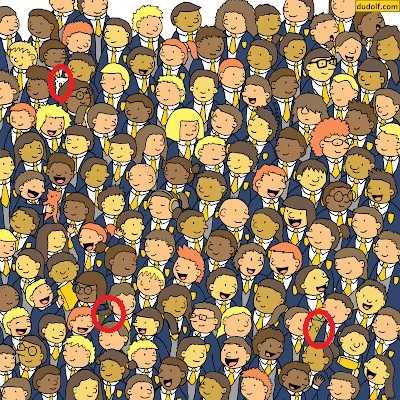 Look closely at the image; the owls are happily peeping from the back side of the students.
