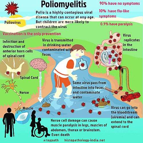 The life-threatening illness is caused due to poliovirus. It spreads from person to person and can be spread through contaminated water, feces, or an infected person’s cough or sneeze.