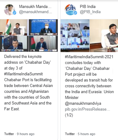 So, we can say that the Maritime India Summit-2021 concludes on 4 March with ‘Chabahar Day’. No doubt the three-day maritime conference was one of the biggest virtual maritime summits of the world.