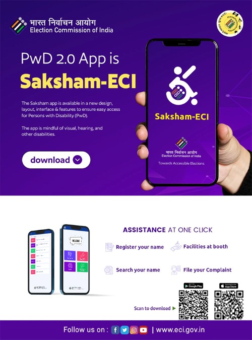 The Saksham App is available for download on both Android and iOS platforms and serves as a crucial tool for promoting inclusivity in the electoral process.