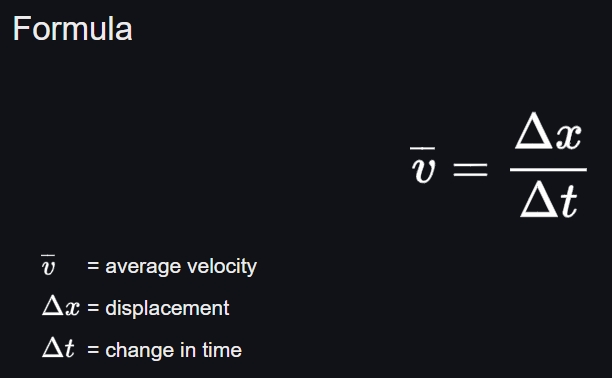 | 7 | Equation | Velocity Formula = Change in Position / Change in Time | speed = distance ÷ time |