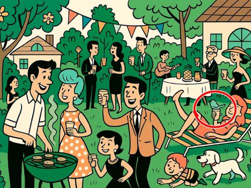 In the puzzle presented below, you need to find the hidden bird that is hiding in the scene of a party.