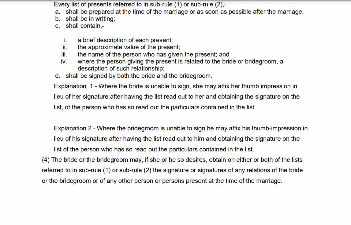 In many cases, dowries are presented as cash payments or valuable gifts, including jewellery, household items, and vehicles. The demands for these gifts often escalate, leading to financial strain on the bride's family.