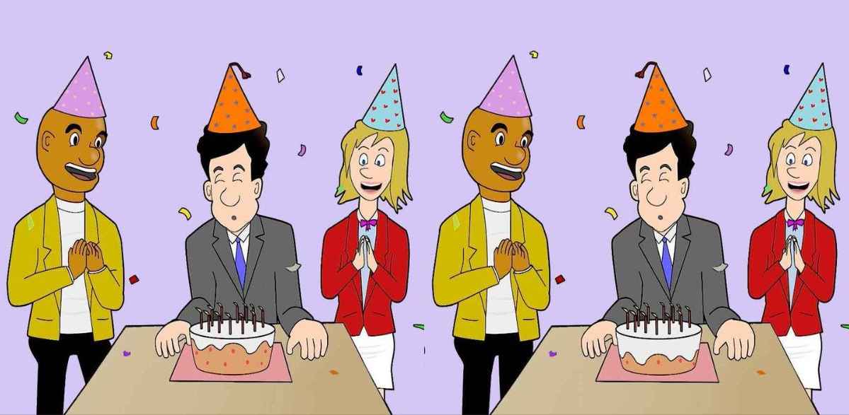 The image shared above depicts birthday party pictures in an office.