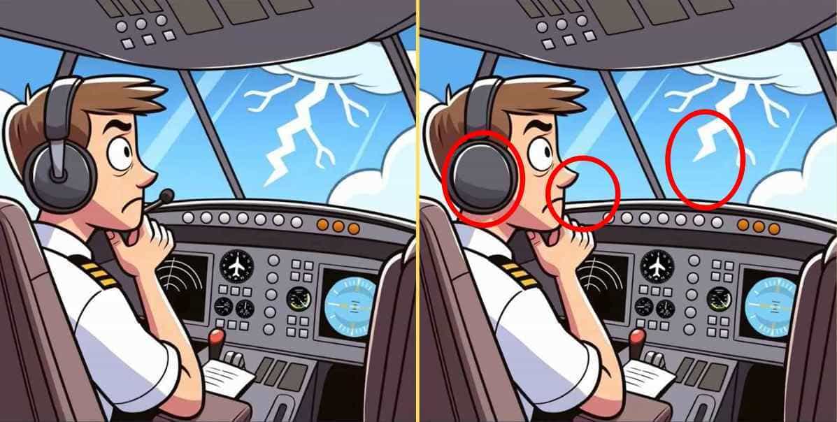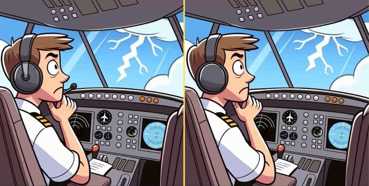 The image shared above depicts pictures of a pilot flying an aircraft in the middle of a storm.