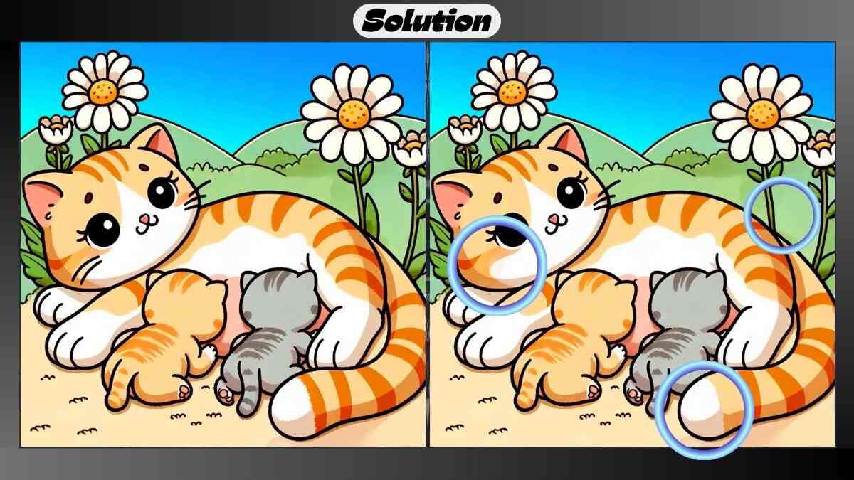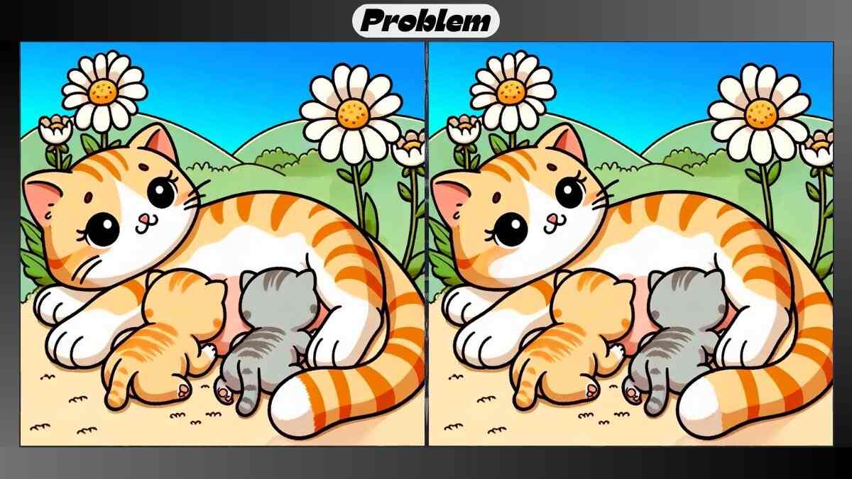 Check out this Mother Cat feeding her kittens scene. Can you find all the differences in just 15 seconds?
