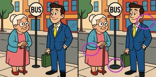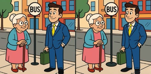 Take a close look at the two pictures of people waiting at the bus stop. At first, they may seem similar, but there are 3 differences that are cleverly hidden. Can you find them all in just 19 seconds? Start the timer and see how sharp your eyes are.