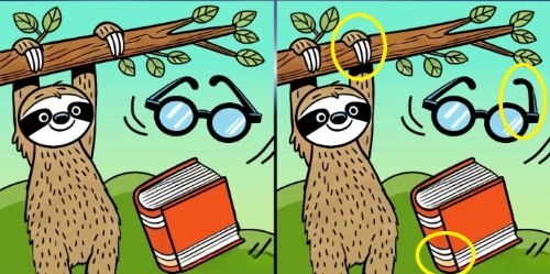 Test your observation skills with this tricky visual puzzle! You'll see two almost identical images of a sloth hanging from a tree, but don't be fooled as there are 3 subtle differences cleverly hidden within the scene. Your mission? Spot them all in just 19 seconds! It's a race against time that will challenge your sharp eye and quick thinking. Think you're up for it? The clock is ticking—let's go!