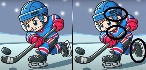 Put your observation skills to the test with this thrilling puzzle! Your mission: spot three sneaky differences in two almost identical pictures of a boy playing ice hockey. The catch? You’ve got just 21 seconds to crack the puzzle! Can you rise to the challenge and beat the clock? It’s the ultimate blend of excitement and focus to give your brain a workout. Ready, set, go—good luck!