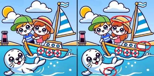 Get ready for the ultimate visual adventure of the day! In front of you are two almost identical images of a guy and girl sailing on a boat—but don’t let your eyes deceive you. Hidden within these pictures are 3 sneaky differences, waiting to be uncovered. Can you find them all? Here’s the catch: you have just 21 seconds to solve this tricky puzzle!
