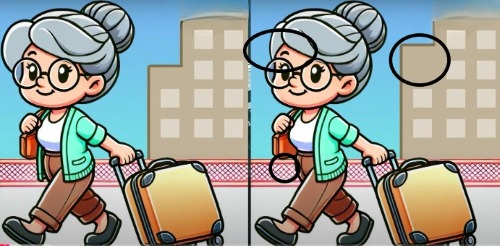 Are you ready for a quick challenge? This spot-the-difference puzzle invites you to look closely and find three tiny differences between two almost identical images of an old lady carrying her travelling bag. But here’s the twist: You only have 21 seconds to solve it! This quick, fun test will push your observation skills to the limit—perfect for those looking for a short mental break.