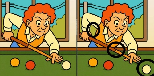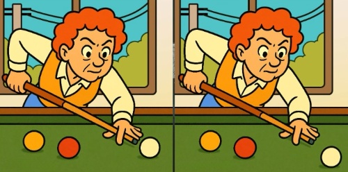 Now it’s your turn! Take a look at these two pictures of a man playing snooker. At first, they seem exactly the same—but if you look closely, you’ll find three small differences. Think you can find them all in just 23 seconds? It’s a quick and fun challenge—ready, set, go!