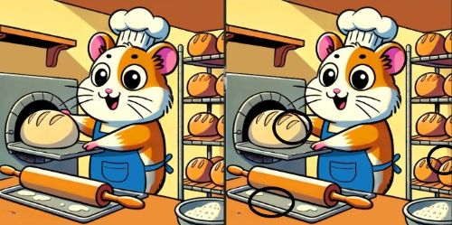 Get ready for a fun and tricky challenge! You’ll see two pictures of a hamster baking bread that look almost the same, but three small details have been changed. Your task is to find all the differences in just 29 seconds! This puzzle is designed to test your sharp eye and quick thinking. Think you can spot them all in time? Let’s get started—the countdown begins now!