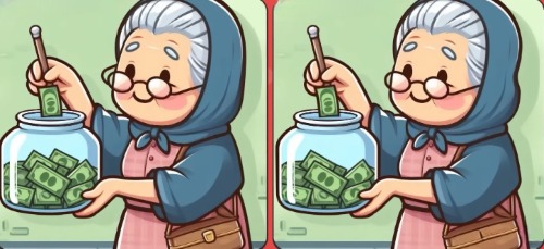 Sharpen your observation skills with this exciting challenge! Two almost identical images show an old lady saving money in a jar—but can you spot the 3 hidden differences? Here's the twist: you have just 33 seconds to find them all! It's a race against time to prove your sharp eye and quick thinking. Are you ready to take on this thrilling brain teaser? It’s the perfect mix of fun and focus to give your mind a quick, energising workout. The clock is ticking—let's go!