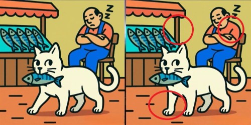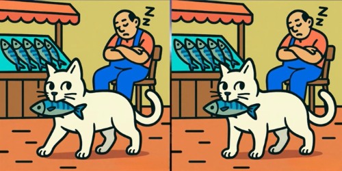 Take a close look at the two pictures of a cat stealing a fish. At first, they may seem similar, but there are 3 differences that are cleverly hidden. Can you find them all in just 35 seconds? Start the timer and see how sharp your eyes are.
