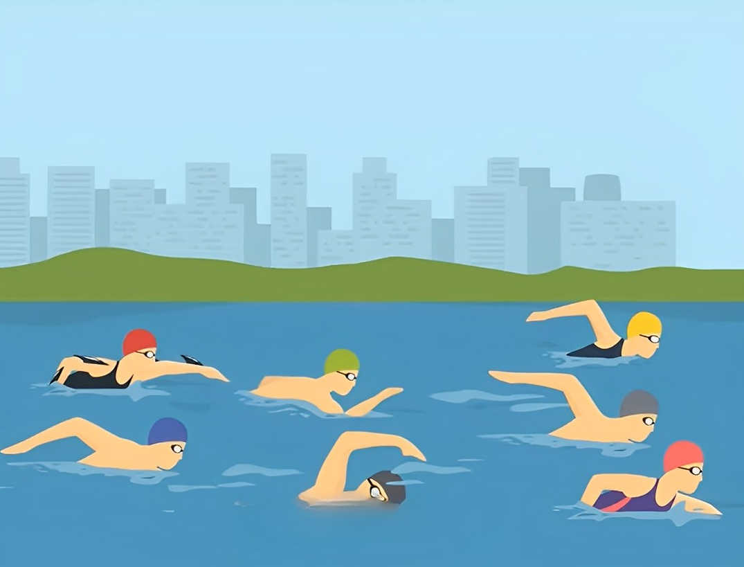 The image shared above depicts a swimming pool scene where 7 people are seen swimming.