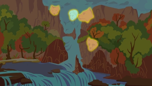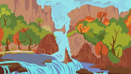 - Animal Faces: Hidden within the rocky cliffs are animal faces subtly etched into the landscape, such as: