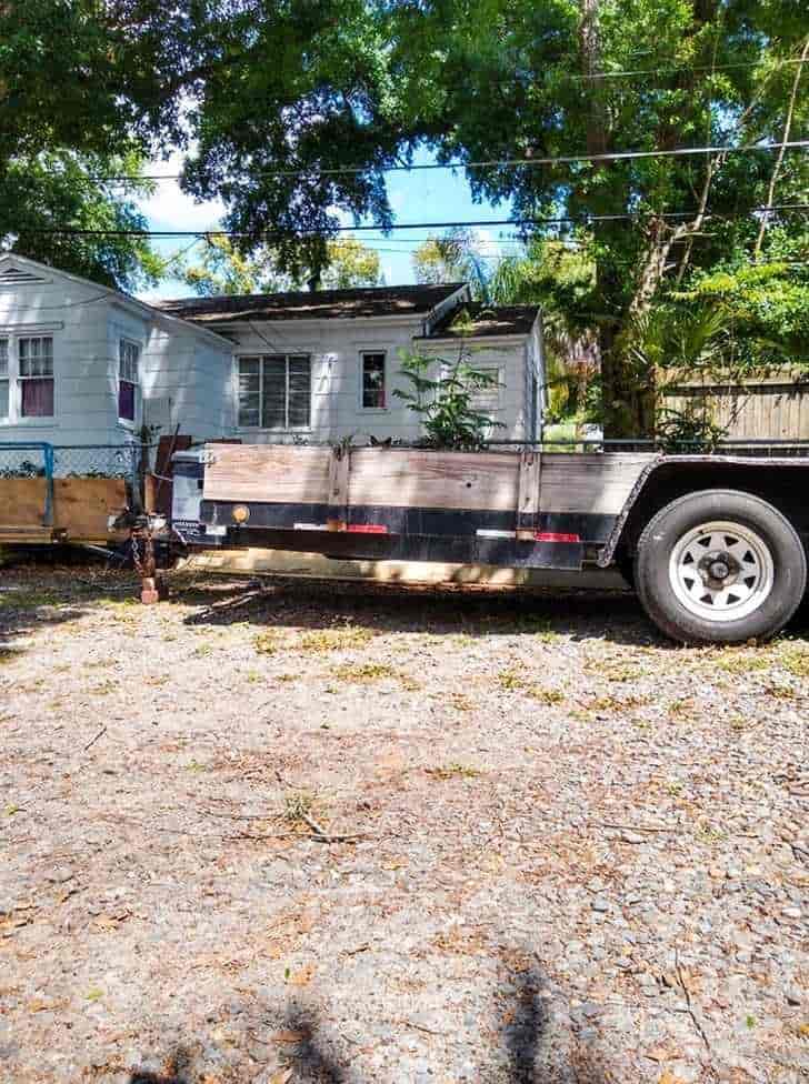 In the image shared above, a backyard scene is presented before the readers, where a pickup truck can be seen parked.