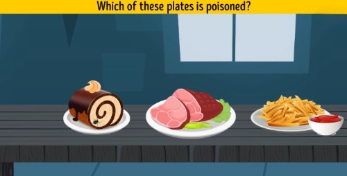 The image below displays three food plates. Your task is to which one of them is poisoned. Can you solve it?