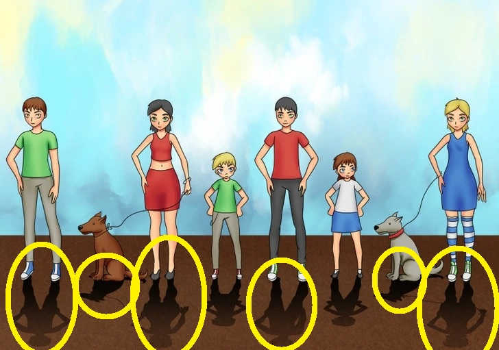 The shadows of the two big boys and girls and their pets have swapped their positions, which is practically impossible.