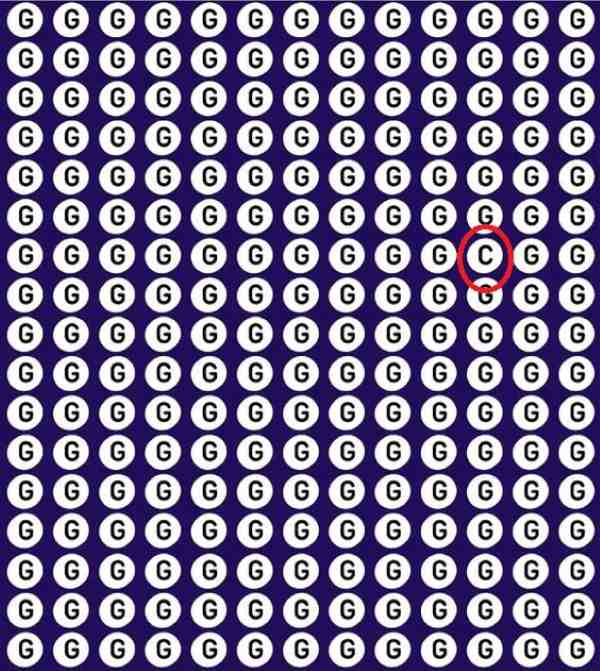 In the puzzle presented below, you need to find a different letter that is hiding in the series of the letter G.