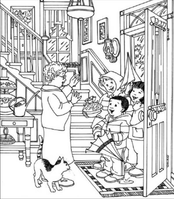 The image features a grandma who is surprised by children at the door. There are a number of things that can distract you from finding the artist's brush.