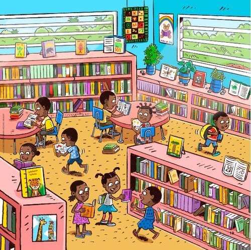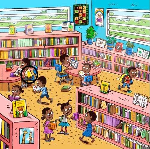 In the image presented below, you will witness a library scene where children are reading books and your challenge is to spot a hidden bell that has gone missing.