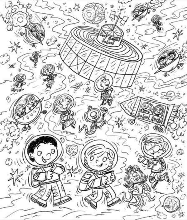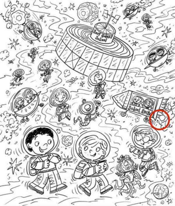 This puzzle features a fun galactic school where children are enjoying and roaming in spaceships. In the chaotic scene, you need to spot a bulb that is hiding right in front of your eyes.