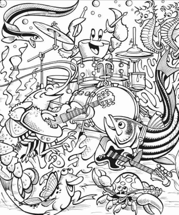 Turn your attention to the image; you can see a lot of sea animals playing musical instruments.