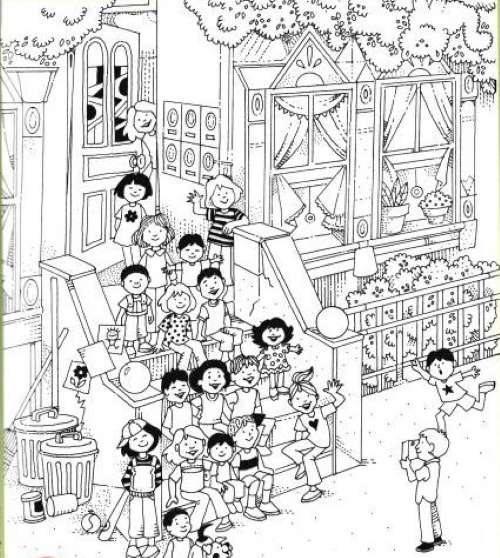 The above image shows children sitting and posing for a photograph. It can be difficult to spot the hidden cat as there are many elements in the image that conceal the animal perfectly.