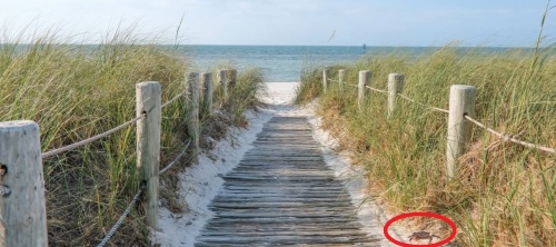 Today’s challenging puzzle shows a simple coastal scene, which is a cleverly designed optical illusion image. At first glance, this picture looks very normal, and there is an ocean with a wooden block connected with green grass. Still, in this optical illusion, there is a different perception in which a crab is also hidden in this optical illusion. And you need to find the hidden crab. So, if you think you're a genius with a sharp IQ, then see the hidden crab from this optical illusion in just 7 seconds.