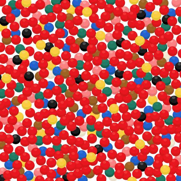 The image features a white background that is filled with snooker balls. There are a number of things that can distract you from finding the cue balls