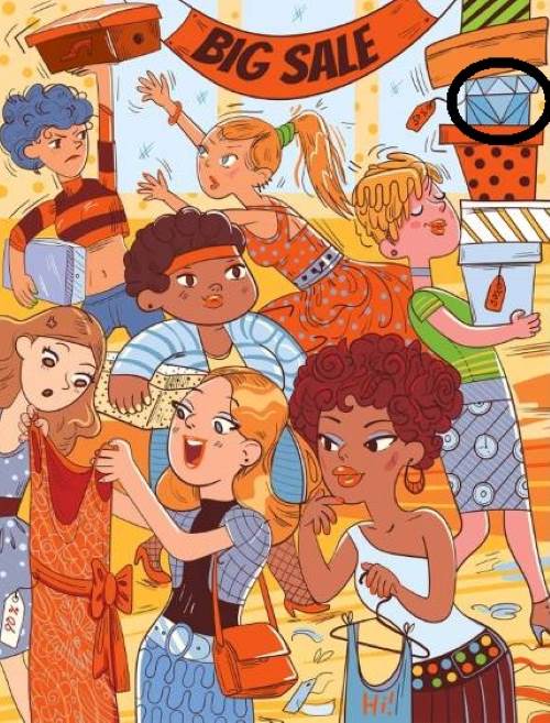 Alright, today’s challenge is a fun one. Somewhere in this lively market full of shoppers and sale signs, a tiny diamond is hidden. It's not easy — the scene is so packed with colours, people, and bags that your eyes can easily get tricked. These kinds of puzzles are perfect if you want to test how sharp your observation skills are.