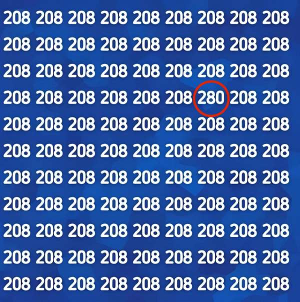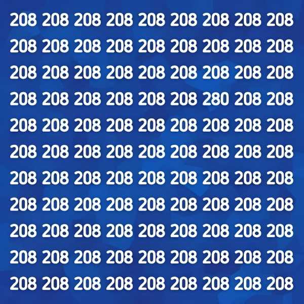 The puzzle below features the number 208 written on an image. The challenge that arises for you is to find the number '280' which is the odd one out.