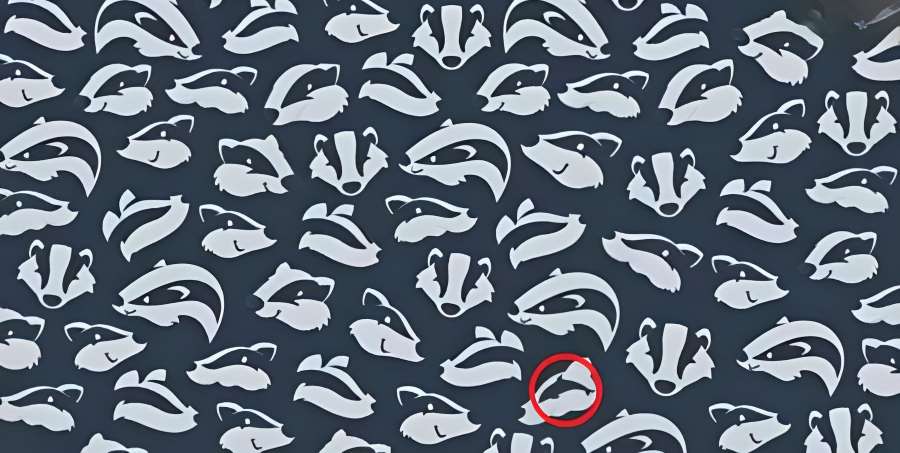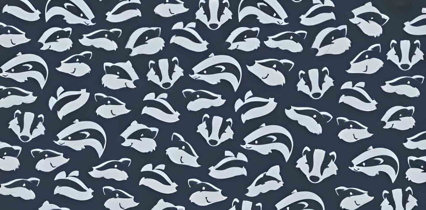 It is an image with a blue background and carrying badger heads and among those heads, there is a dolphin hiding very cleverly.