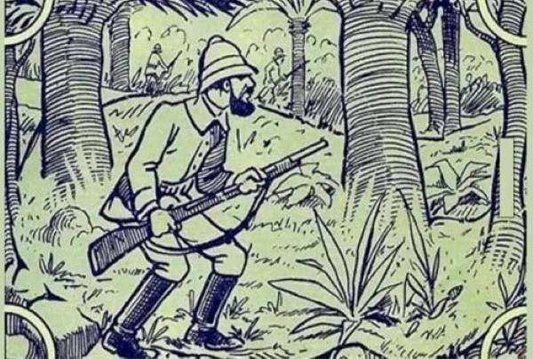 The above image shows a scene of people hunting in a forest.