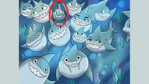 Take a close look at this optical illusion image and try to spot the hidden fish among the sharks. It may appear too tricky to find the fish but once you dig deeper you will find it hidden in the centre of the image.