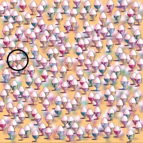 One popular optical illusion is the "hidden golf ball" puzzle. In this puzzle, you are presented with a picture of easter eggs. Among the eggs, there is a golf ball hiding very discreetly.