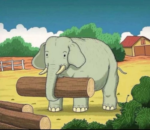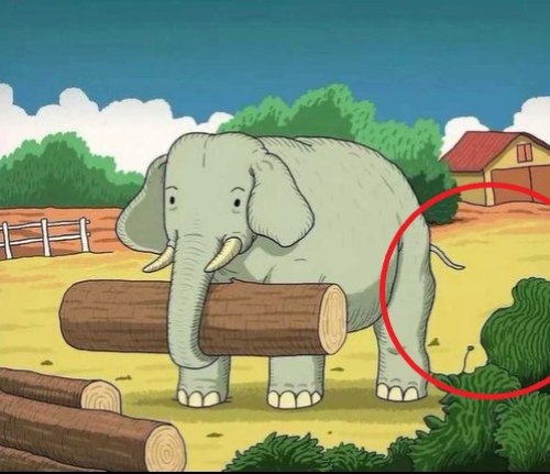 One popular optical illusion is doing rounds on the internet where a cute elephant is walking with a wooden log in his trunk. In this puzzle, there is a horse's face that is cleverly hiding. Your challenge is to find the horse's face.