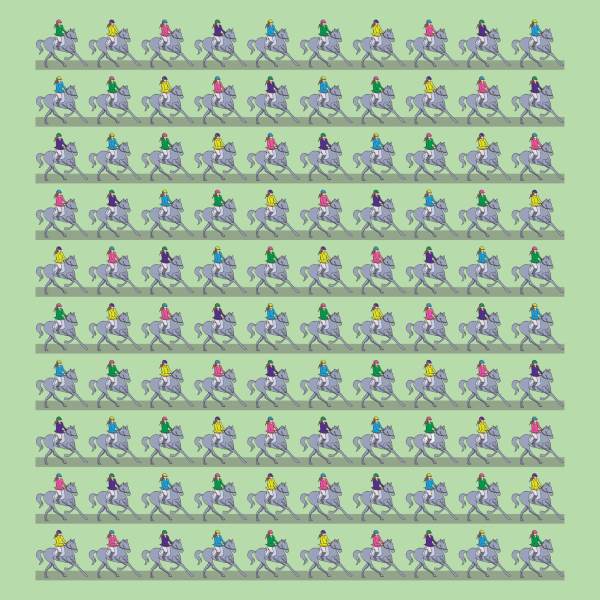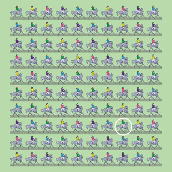 Seek and Find Puzzle: Find the Hidden Jockey With White Saddle