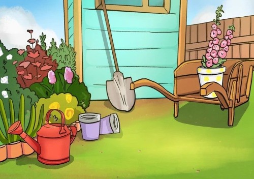 In the image above, your challenge is to identify the mistake hidden within a backyard garden scene. The picture depicts a house's backyard with a small garden, complete with a watering can, a shovel, plant pots, and a cart holding a flower pot. To solve this puzzle, observe the image carefully, as the error is subtle yet clever. A little hint—while the answer may seem simple, it requires a keen eye to spot! Be sure to take your time before scrolling down, as the solution is provided right below the question—no peeking!