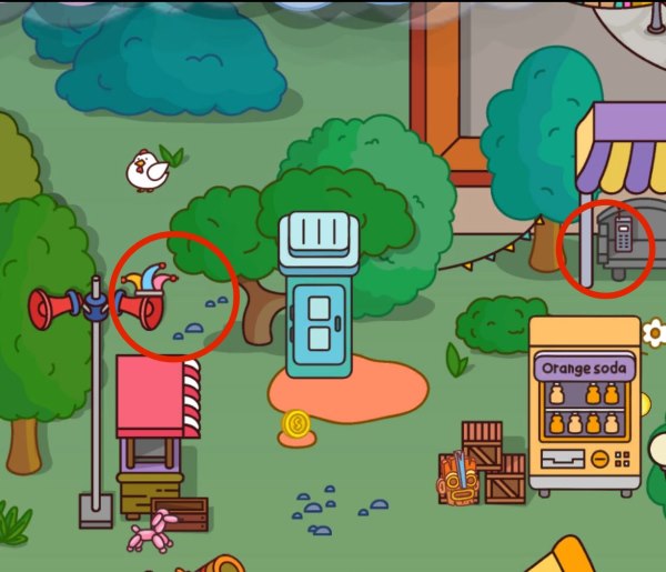 The image features a scenery that is filled with various items. There are several things that can distract you from finding the two specific objects.
