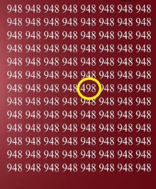 The puzzle below features the number 948 written on an image. The challenge that arises for you is to find the number '498' which is the odd one out.