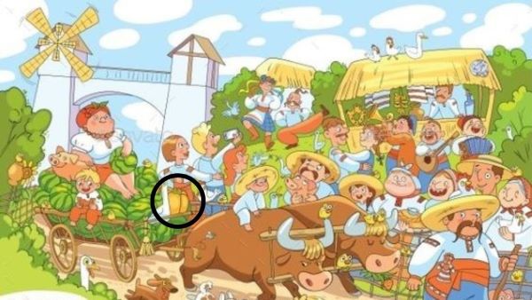 In one such seek-and-find puzzle, your mind will be baffled. In the image below, you will see people carrying watermelons on a cart and your challenge is to find a hidden pumpkin among the chaos.