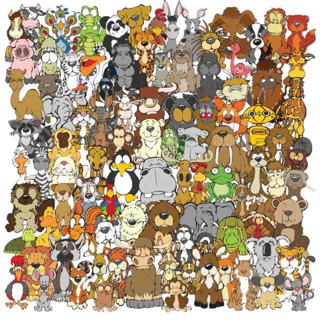 The image features a lot of animals and among them, an inanimate object which is a robot is hiding notoriously.