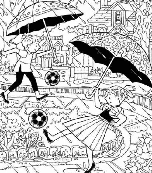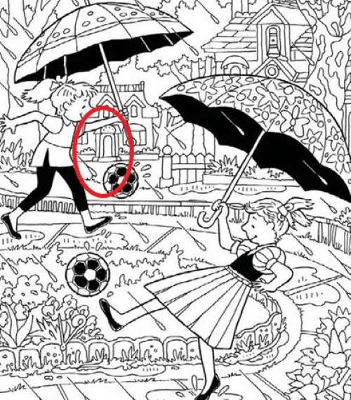 The image below invites you to find a saltshaker hidden within the scene of a rainy day soccer practice.