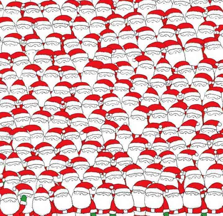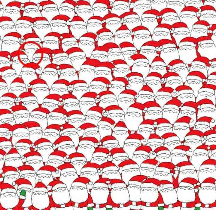 A sheep is hiding in plain sight among the Santa’s in the picture.