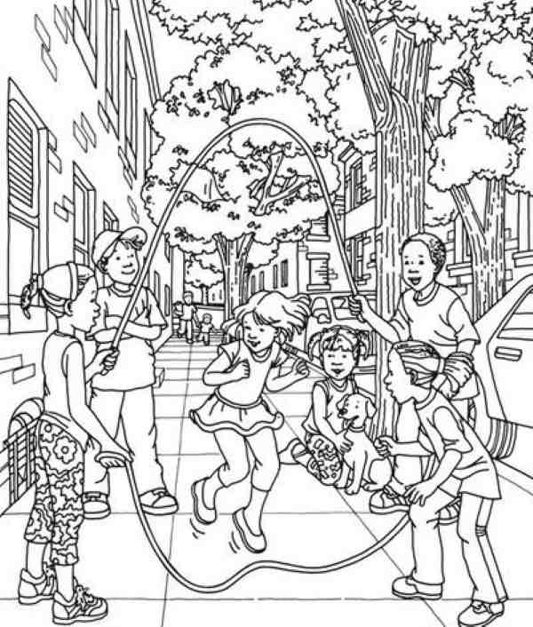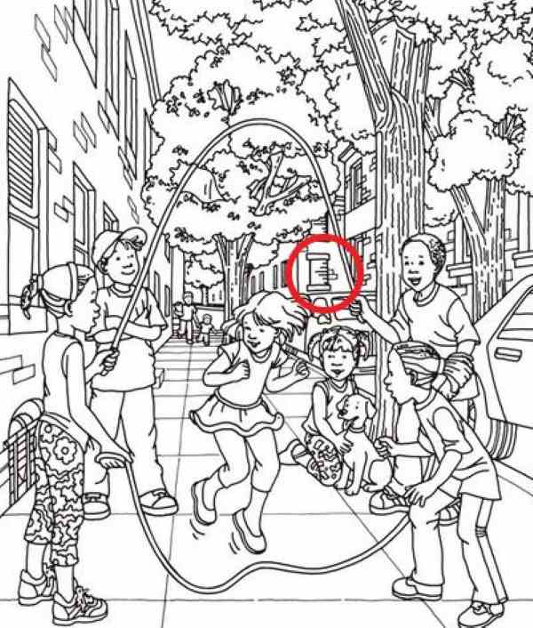 In the image below you will see children skipping rope and features a hidden spool of thread in this chaotic scene.
